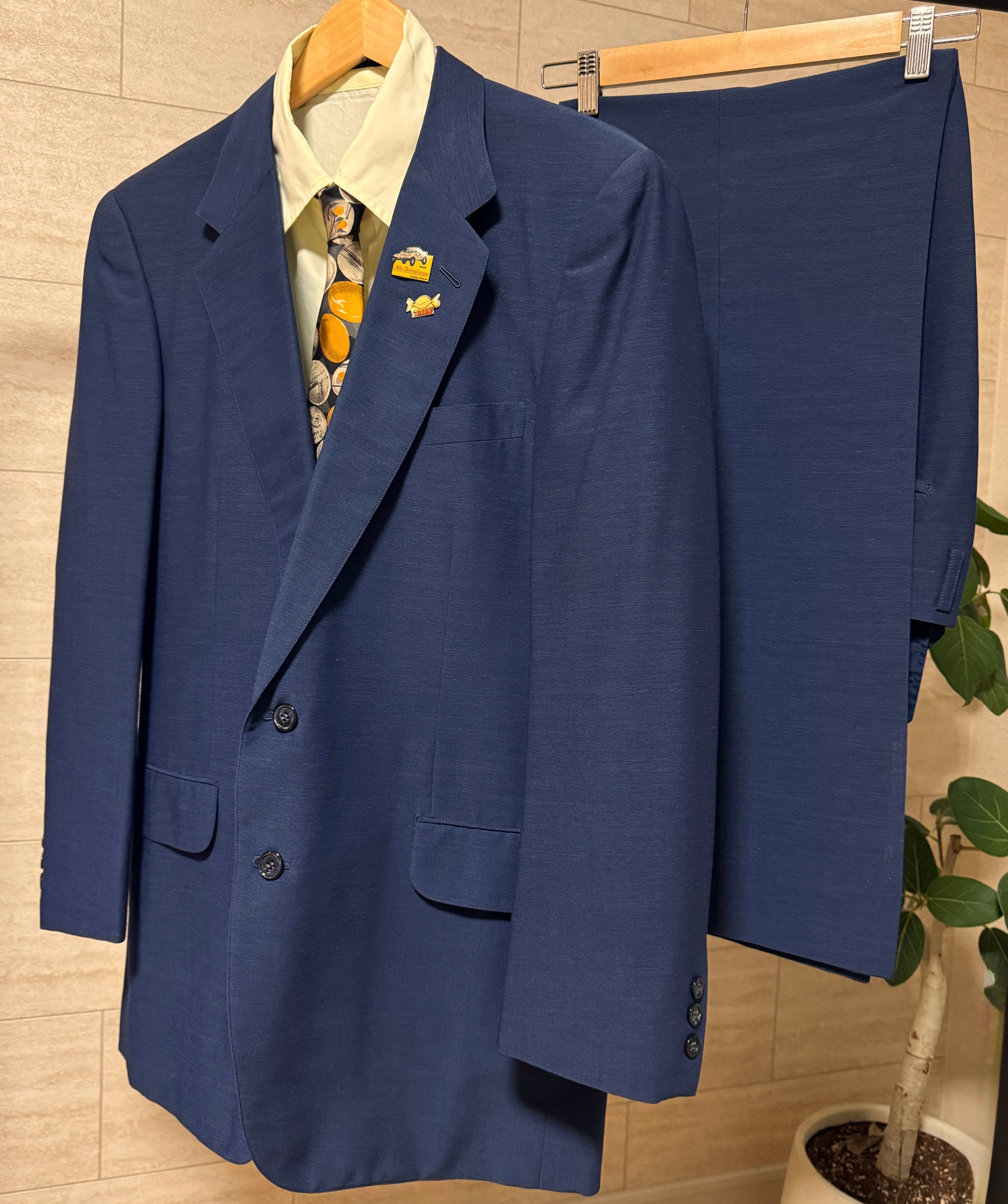 深みのあるネイビーのヴィンテージセットアップ。